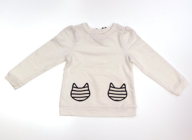 使用感が目立ちますが、汚れがなくまだまだお使いいただけます。猫の部分がポケットになっていて可愛らしいデザインです。実際のサイズ表記は4-5Tです。