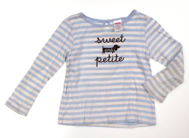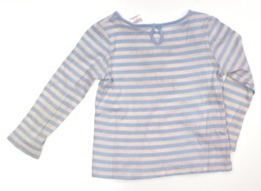 首周りがすっきりとしたボーダーカットソー。首元やお袖に黄ばみが見られますがまだまだお使いいただけそうです。お外遊び用にいかがでしょうか?実際のサイズ表記は4Tです。