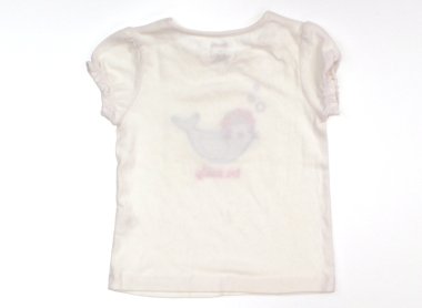 - 実際のサイズ表記は2Tです。左脇あたりに黄色い汚れがありますが、アザラシが可愛らしいtシャツです。