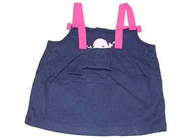 実際のサイズ表記は4Tです。とても手ざわりのいいカットソー。肩のグログランリボンがキュートです。色あせ・型崩れはありますが可愛いクジラさんがたまらないお品です。
