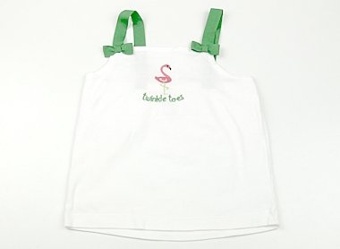 - 実際のサイズ表記は3Tです。肩のグログランリボンがキュート。柔らかく薄いカットソーです。ピンクフラミンゴ刺繍が可愛いキャミソールです。