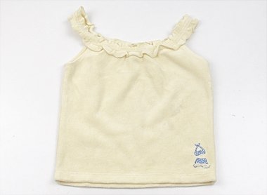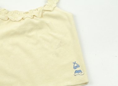 実際のサイズ表記は18-24monthです。薄い汚れ有。それ以外は目立つ汚れは見当たらずまだまだ活躍してくれそうです。タオル地です。