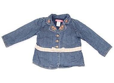デニムならではの色落ち・型崩れはありますがデザインがとってもキュートです。まだまだ活躍してくれそうです。実際のサイズ表記は3Tです。