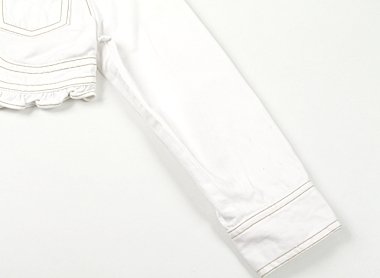 - とっても可愛いボレロふうホワイトGジャン。若干毛羽立ち・わずかな変色がありますが、目立った汚れはありません。まだまだ活躍してくれそうです。