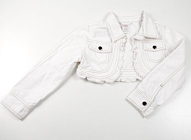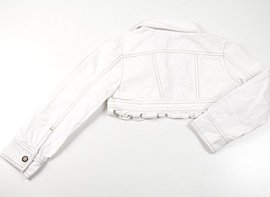 とっても可愛いボレロふうホワイトGジャン。若干毛羽立ち・わずかな変色がありますが、目立った汚れはありません。まだまだ活躍してくれそうです。