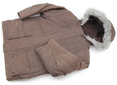 - 実際のサイズ表記はS(5-6)です。中綿の暖かいアイテムで裏はフリース。白っぽいスレ感がありますがまだまだ普段着として活躍してくれそうです。