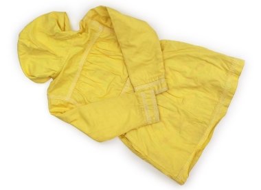 実際のサイズ表記はSです。毛羽立ちや、茶色や黒の、ピンクの汚れが点々と袖やその上、後ろ裾にピンク色やグレーの汚れが複数あります。外遊びや洗い替え用にいかがでしょうか?薄手の綿素材にカットソーの裏地が付いたものです。格安にて。