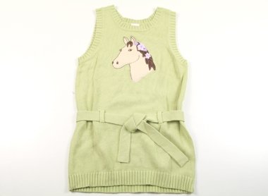- アップリケが可愛いベスト。インナーしだいでオールシーズン使えそうですね。実際のサイズ表記はMで130相当です。