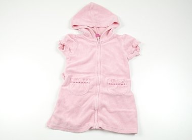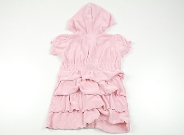 パイル生地のパーカーワンピース。お尻のフリルがかわいいですね。実際のサイズ表記は18-24mosです。美品です。