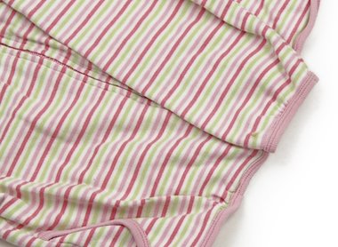 ブランドタグに記名跡あるため、星を一つ減らしています。両袖口に1cmほどのシミがあり、全体に毛羽立ちがあります。手触りのいいカットソー生地です。普段着としていかがでしょう。色使いが可愛いお品です。(記名あり)