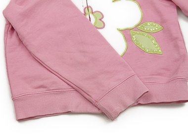 実際のサイズ表記は5です。全体に色あせ・袖口に黒ずみと若干の擦り切れあり。普段着としていかがでしょう。アップリケがかわいいです。