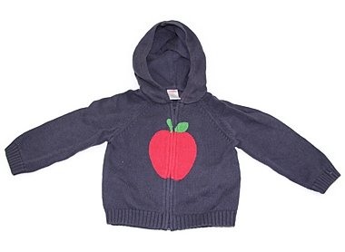 りんごちゃん♪コットンニット。襟元にうっすら色褪せがありますが、目立った汚れのない良品です。