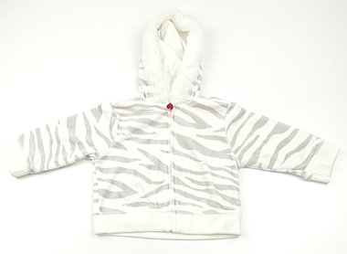 実際のサイズ表記は12-18monthsです。お腹部分に薄い赤いシミがある以外は毛玉もヨレもない美品です。ベロア素材でリッチな風合いです。