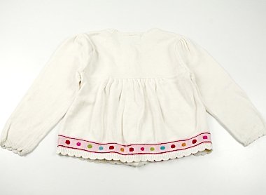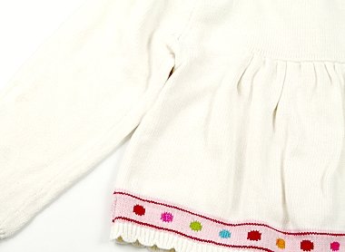 - 実際のサイズ表記は5Tです。ミドルゲージのニットカーディガン。袖に複数ごく薄いシミがありますが、ほっこり可愛いお品。まだまだ活躍してくれそうです。