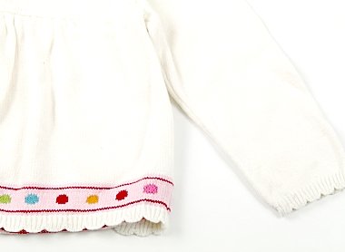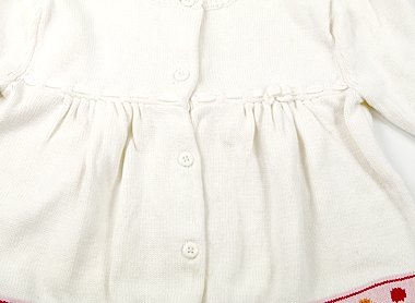 実際のサイズ表記は5Tです。ミドルゲージのニットカーディガン。袖に複数ごく薄いシミがありますが、ほっこり可愛いお品。まだまだ活躍してくれそうです。