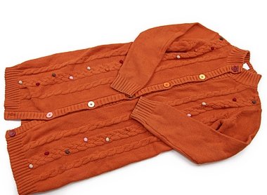 実際のサイズ表記はL(10-12)です。毛羽立ち・袖口や、端々の黒ずみ・全体的に使用感がありますが大人っぽいかわいいカーディガン。ミニスカートにはおってもキュートです。
