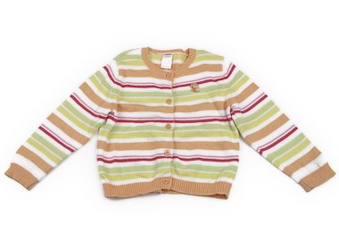 実際のサイズ表記はXS(3-4)です。袖に黄色や薄黒い汚れ、前身頃真ん中右付近にうすいシミがあります。他にうっすらとしたシミはありますがとても可愛い色味です。外遊びや洗い替え用にいかがでしょうか?