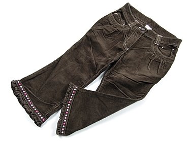 - 実際のサイズ表記は2Tです。細コーデュロイでサイズ調整ゴムが付いています。やや使用感がありますが目立った汚れはありません。