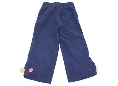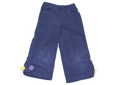 - フリース素材。ウエストは総ゴムです。ポッケは二つ。毛玉が少しありますが、裾の揺れるチャームが可愛いお品です。