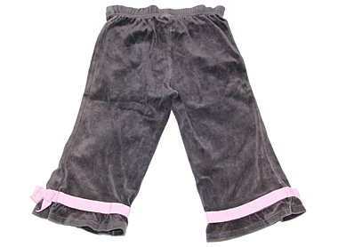 実際のサイズ表記は18-24monthsです。黒ベロア素材です。使用感ありでウエストのゴムが緩めです。それ以外は目立ったシミもなくまだまだ普段着として活躍してくれそうです。
