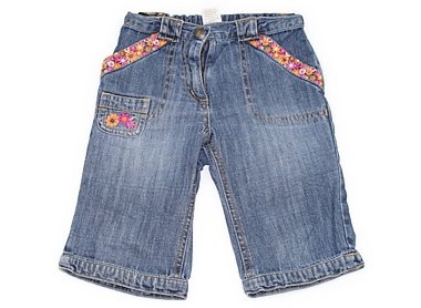 実際のサイズ表記は2Tです。薄く、くったりしたデニム。デニムならではの色落ちはありますが刺繍が凝っていてとってもキュートです。