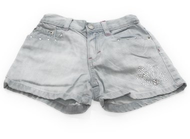 ごく薄いブルーのデニム。サイズ調整ゴムが付いています。スワロフスキー調の飾りが可愛いです。使用感はありますが、目立った汚れのない良品です。