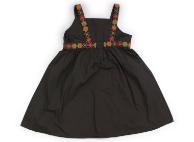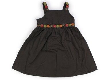 - 実際のサイズ表記は5Tです。色褪せ感があり、前スカートの右下に3ミリほどの黒い汚れが2か所ありますが、まだまだ普段着として活躍してくれそうです。ウェストと肩紐のお花の刺繍が可愛いです。
