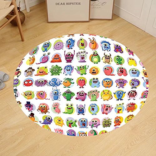 gzhihineカスタムラウンドフロアマットアニメーションCute LittleグラフィックベビーMosters Great forキッズ子供部屋部屋Colored Cartoonsアートリビングルーム寝室寮マルチカラー Round 72 inches