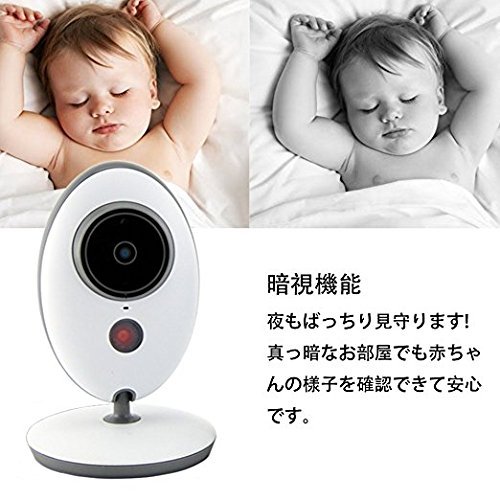 - 【ナイトビジョン】.4GHzデジタルワイヤレスを採用して、暗視映像が安定して受信できます。また赤外線LEDを搭載しており、真っ暗なお部屋の姿でも見えます。赤ちゃんや子供達、介護の必要なお年寄りやペットの姿を簡単に見え、誰もいない部屋から物音も聞こえ、セーフティーを確保できます。