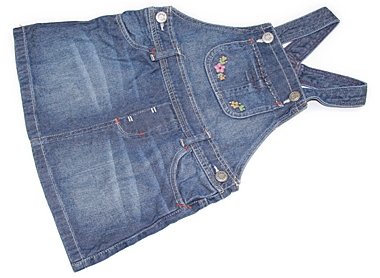 実際のサイズ表記は86cm。デニムならではの色落ちはありますがいい味が出ています。刺繍に若干のほつれはありますがとっても可愛いお品です。