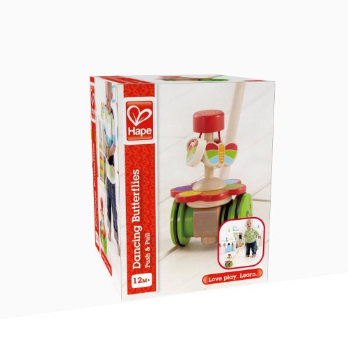 - Includes a handle to push, spinning butterflies, two wheels, and a rainbow of colors