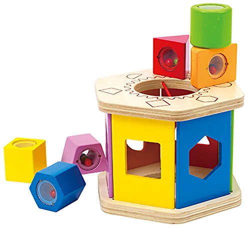 - Colorful shape sorter provides endless fun as each peg goes into its respective hole