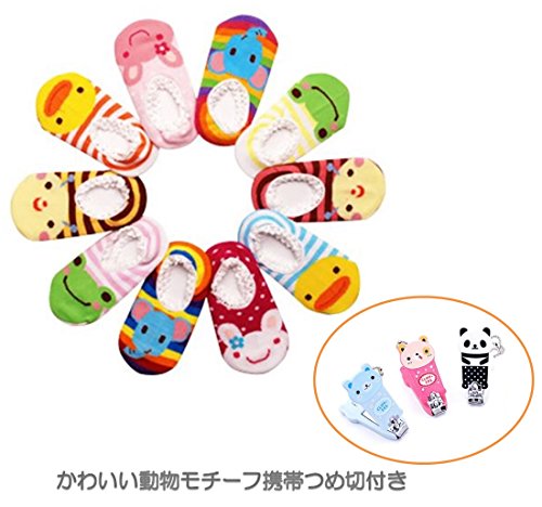 ベビー ソックス かわいい 赤ちゃん 靴下 すべり止め加工 かわいい動物 ツメ切りセット (ゾウ)