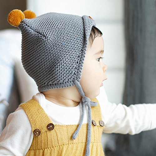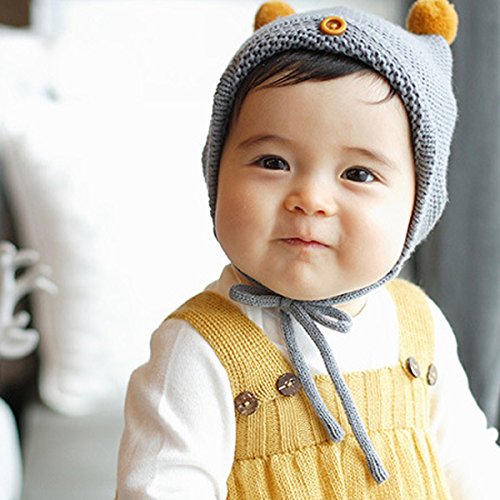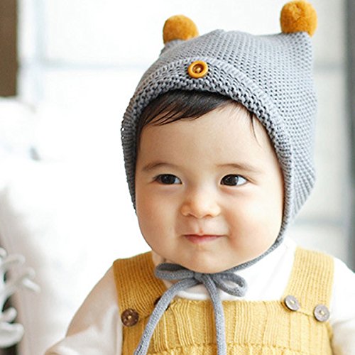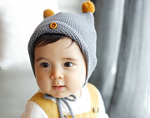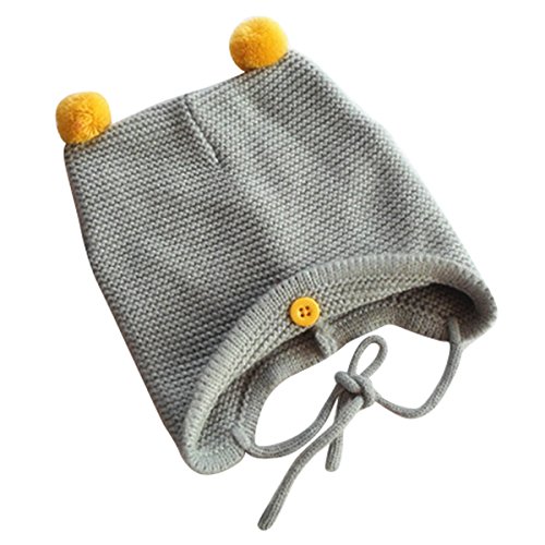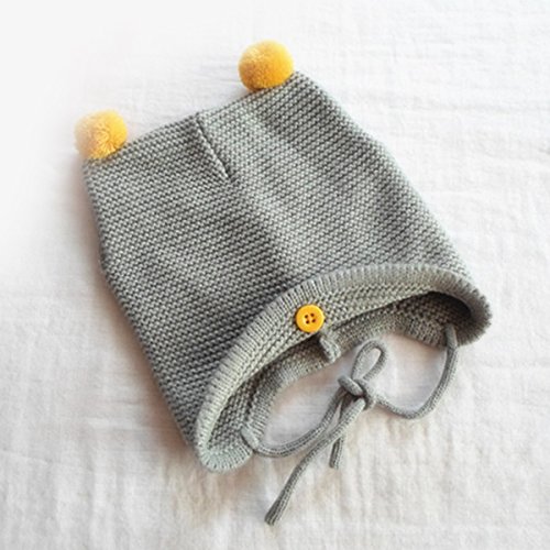 Aubig ダブル ボンボン ストラップ ベビー帽子 グレー