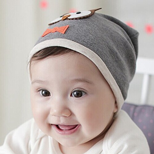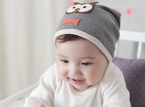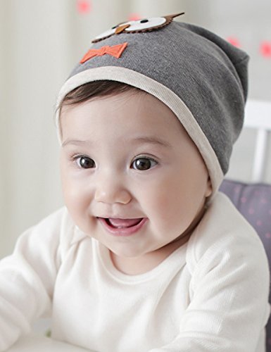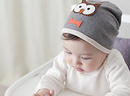 Aubig 韓国風 キャラ フクロウ デザイン 子供帽子 グレー