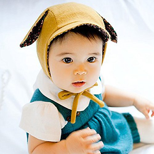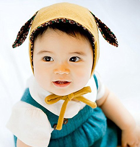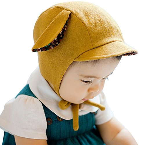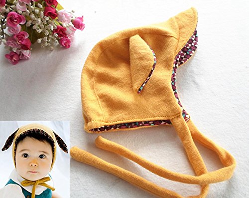 Aubig 韓国風 可愛い 耳ストラップ 耳保護 ソフトハット 子供帽子 イエロー