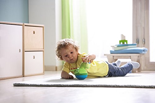 This charming light green dragon baby toy will keep baby engaged and happy with its tinkling noises.;Suitable for children Age 0 - 2 years.;HABA's roly poly figures are made of polyester and measure 6 inches tall and 9.5 inches in diameter (across the belly).;The Roly Poly Dragon has a plastic base which allows toy to wobble to and fro without falling over.;A charming baby toy that will keep baby engaged and happy;Musical noise as it rolls from side to side;Plastic base allows toy to wobble to and fro without falling over