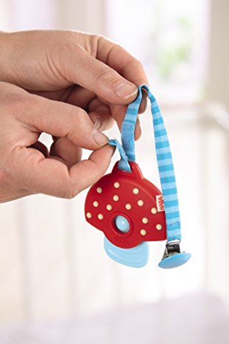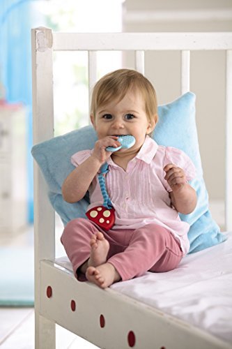 It's your lucky day! Ease tender gums with this lucky mushroom clutching toy made from food-grade silicone. It's filled with water and when refrigerated provides a cool, textured toy for little ones to gnaw, chew on and discover. Includes hook and loop strap with clip to attach to baby's clothing.