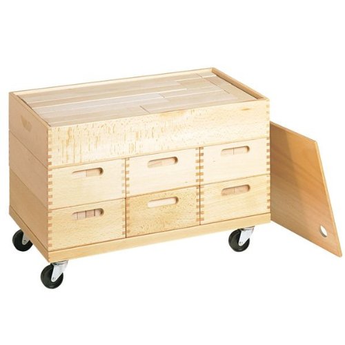 - サイズ:基尺4cm、セット数:保育積木・A~G 各1セット、台車、ふた、材質:ブナ(一部面取りあり)