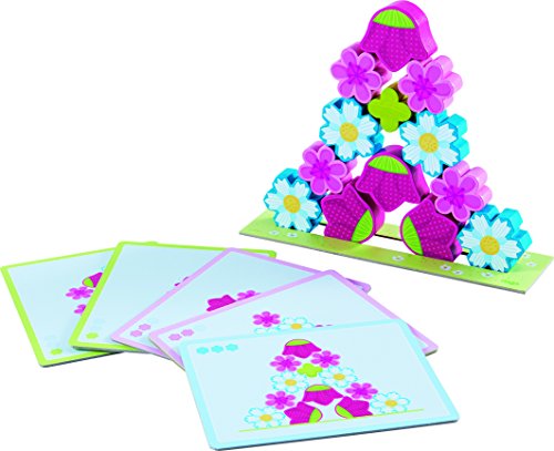 課題カードをお手本にして、花積木を積み上げましょう。女の子のお部屋の飾りにもなる可愛いデザインの積み木です。