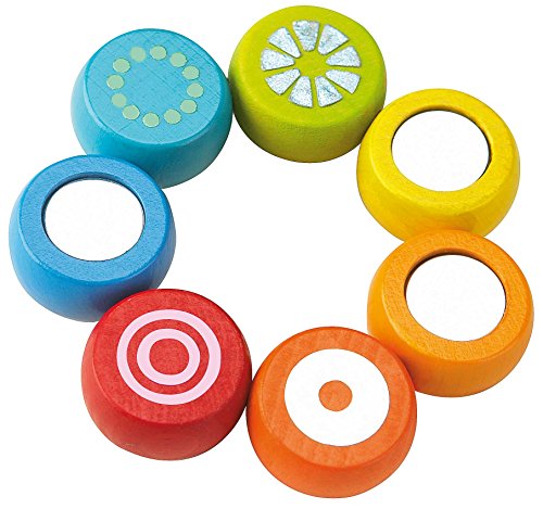 - Great for developing early clutching skills and for teething. The colorful circles also have mirror foil built in for add fun. Measures approx 3.5" in diameter.