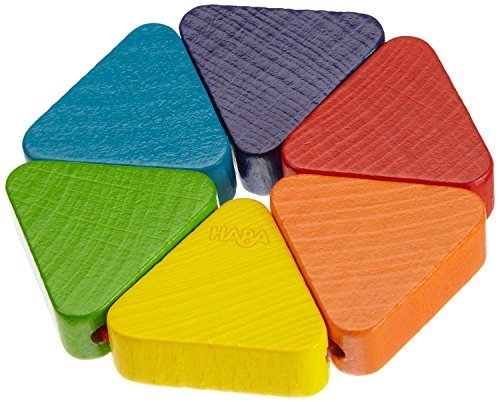 Wood is colored with a water based, non-toxic stain., Baby toys recommended for ages 6 months and up, Moveable pieces held together by elastic allowing the creation of various shapes including a hexagon, star and paramid, Perfect rattle for teething babies, Wood is colored with a water based, non-toxic stain. Made in Germany