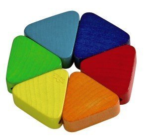 Wood is colored with a water based, non-toxic stain., Baby toys recommended for ages 6 months and up, Moveable pieces held together by elastic allowing the creation of various shapes including a hexagon, star and paramid, Perfect rattle for teething babies, Wood is colored with a water based, non-toxic stain. Made in Germany