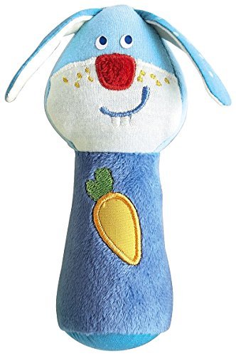 Bobby bunny makes happy rattling songs while jumping. His pretty blue colors with an orange carrot on the front make him the cutest little rattle you ever did see.