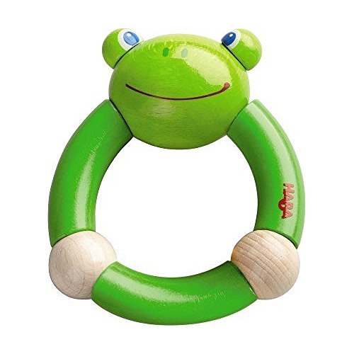 Your little one will be delighted with the Croaking Frog Clutching Toy from HABA. This adorable clutching toy features a brightly colored wooden frog friend. Made from maple and beech wood and colored with a water-based, non-toxic stain.
