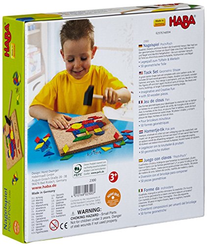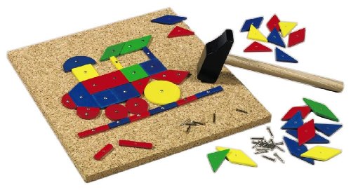 Let your childs imagination take shape with the ability to create endless geometric patterns and pictures. The wooden hammer, cork board, and tacks allow for the fun to continue over and over.