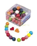 - サイズ:(球)直径16mm、(ビーズ穴)直径6mm、内容数:約40ヶ・ひも1本、材質:ブナまたはカエデ