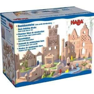 基本的な形から変化に富んだ形まで、総勢102個のボリュームある積木セットです。ベーシックな形に加えて、Xブロックや子どもさんがにぎりやすいポール、球体、円すい形などど、HABAならではのシンプル且つステキなデザインで、お城や夢のたてものまでたくさんつくれます
