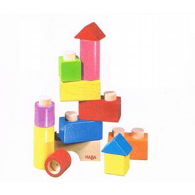 穴とスティックをあわせる、安定感のある積木です。 基尺4cm・13ピース入り