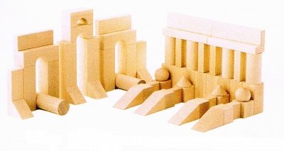 いろいろな形の積木が全部で60ピース入っています。 ☆丸いパーツの形が写真と異なります。